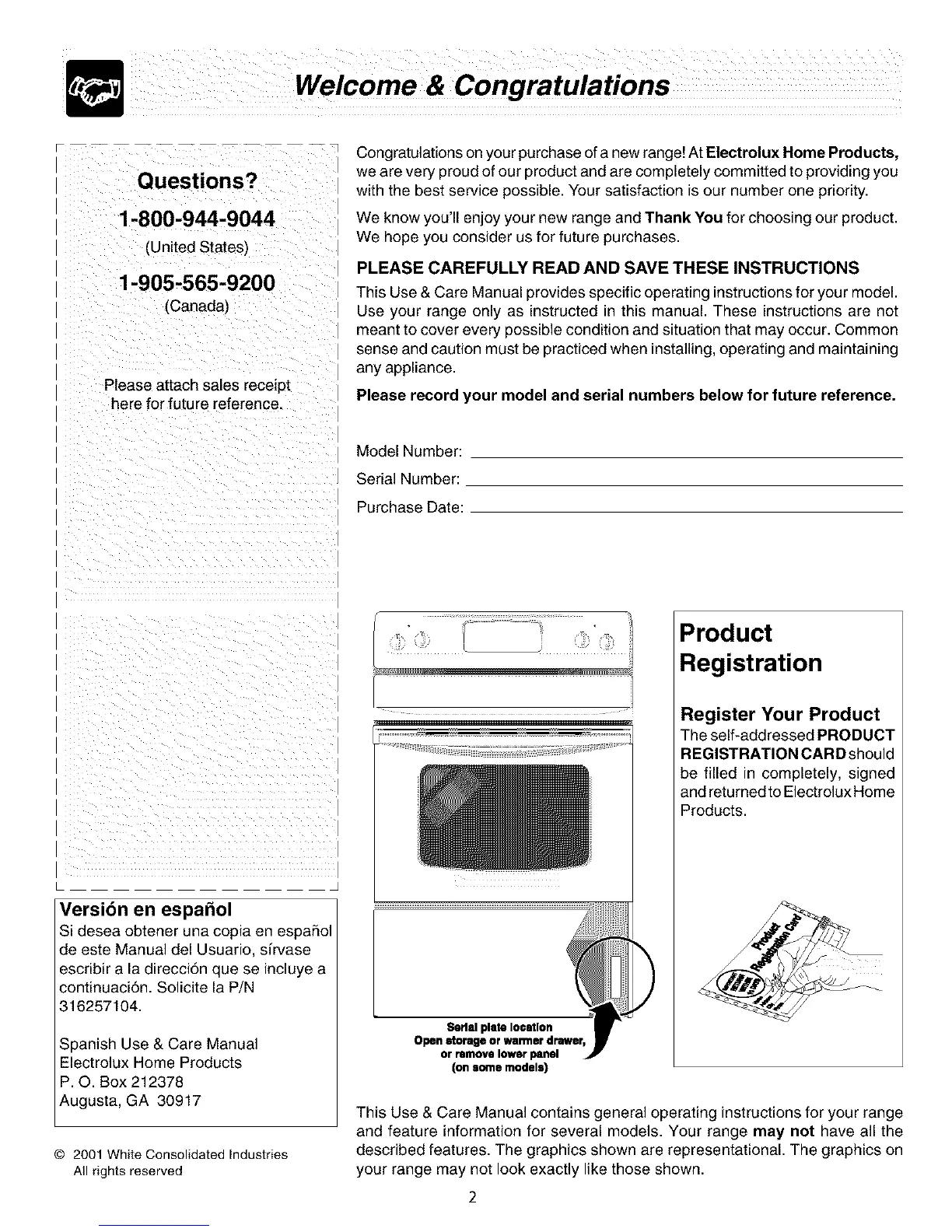 Congratulations on your purchase of a new range! At Electrolux Home Products,
