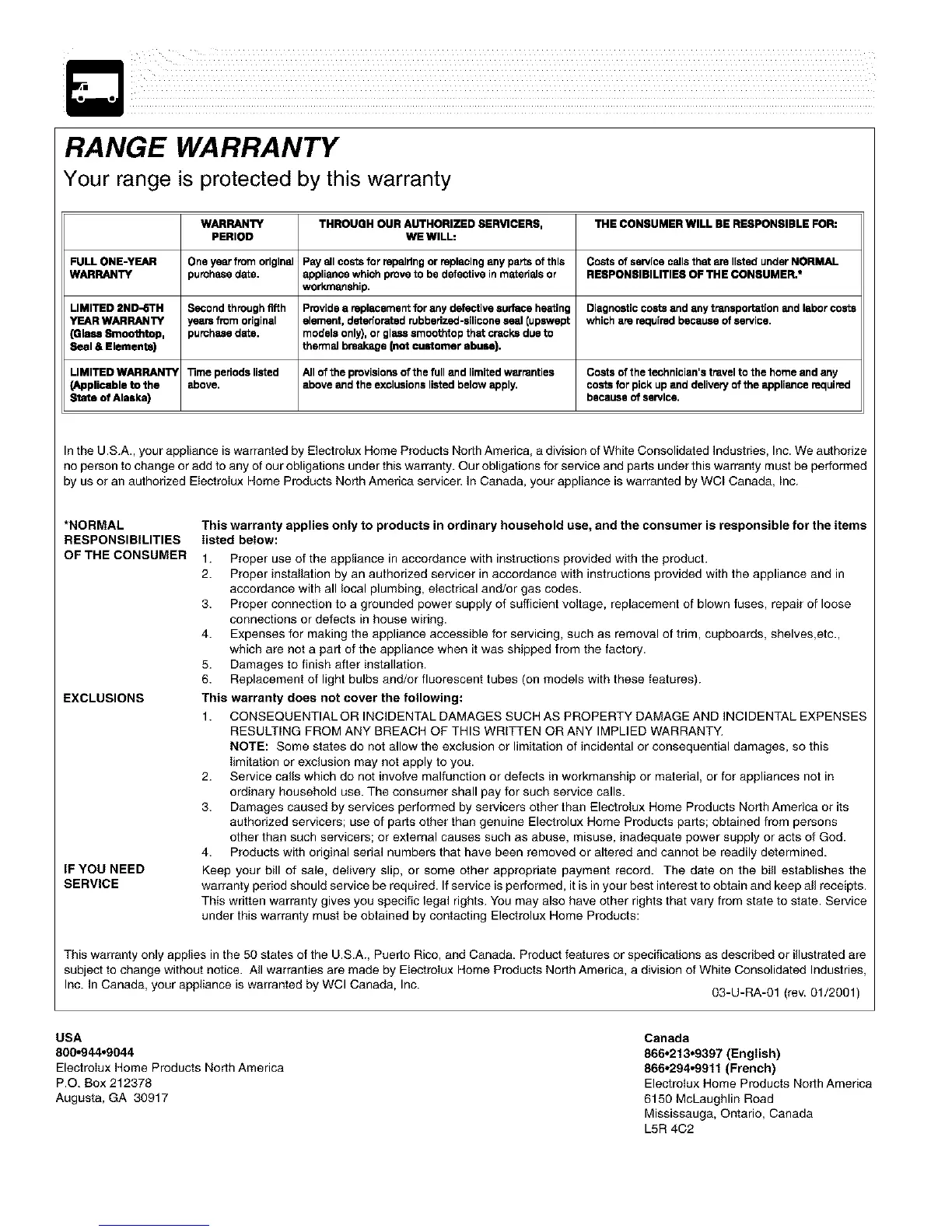Inc. In Canada, your appliance is warranted by WCl Canada, Inc. 03-U-RA-01 (rev. 01/2001)