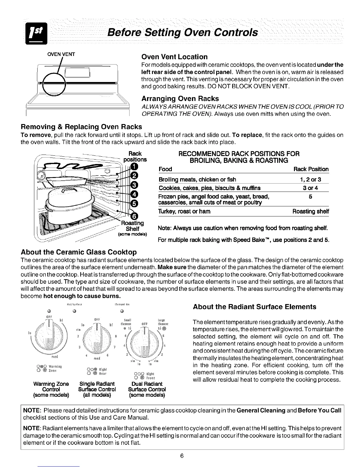 NOTE: Please read detailed instructions for ceramic glass cooktop cleaning in the General Cleaning and Before You Call