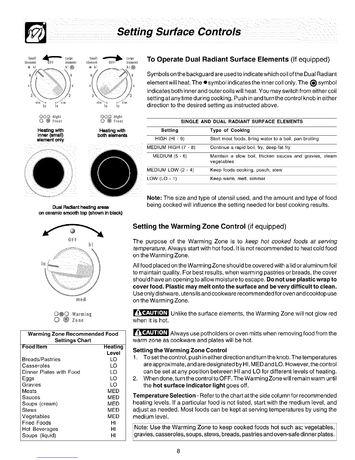 2. When done, turn the control to OFF. The Warming Zone will remain warm until