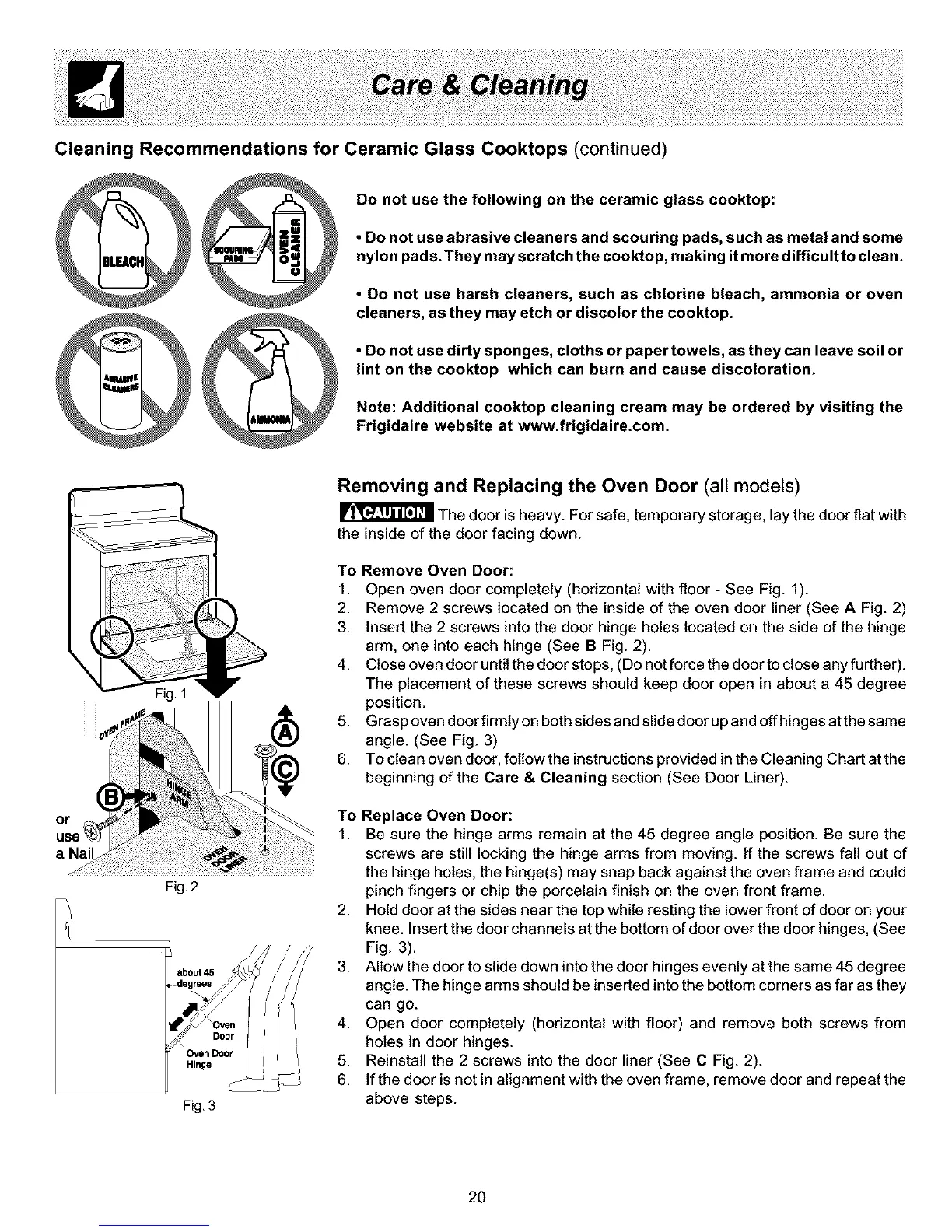 6. To clean oven door, follow the instructions provided inthe Cleaning Chart at the