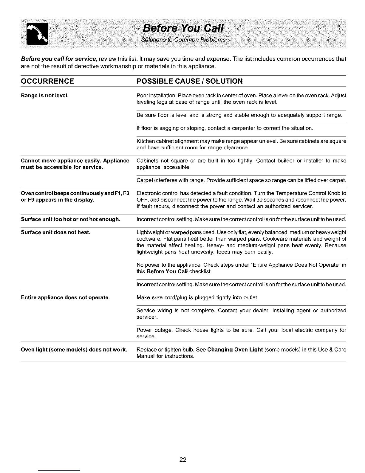 Before you call for service, review this list. It may save you time and expense. The list includes common occurrences that