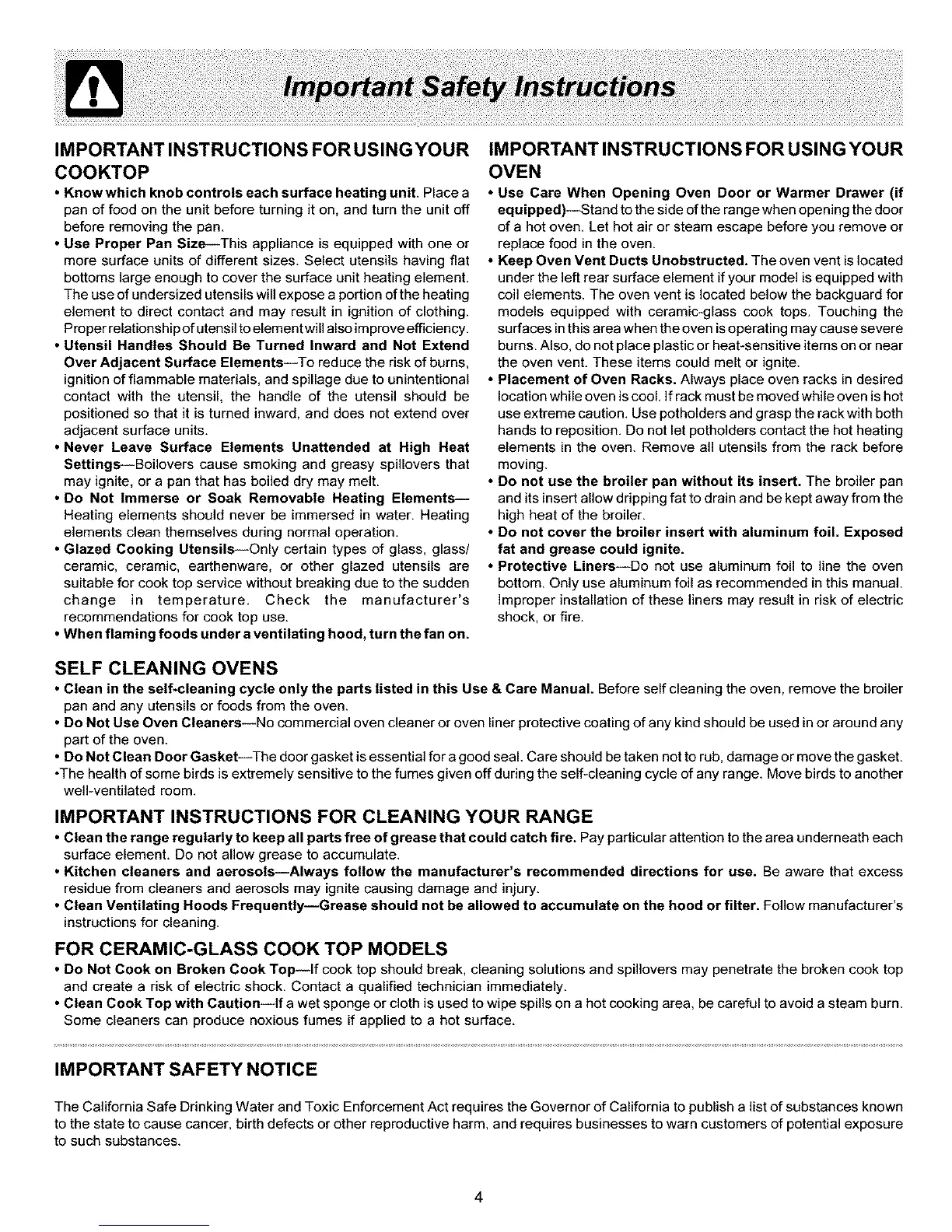 IMPORTANT INSTRUCTIONS FOR CLEANING YOUR RANGE
