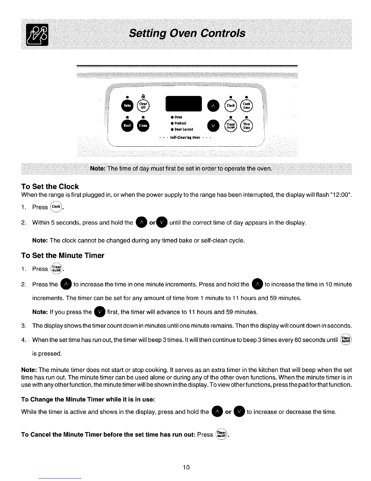 Note: The minute timer does not start or stop cooking. It serves as an extra timer in the kitchen that will beep when the set