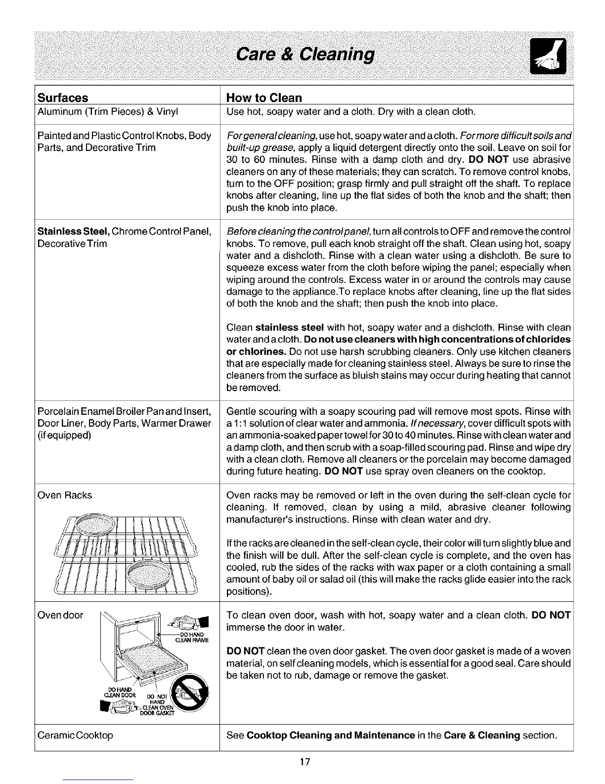 Ceramic Cooktop See Cooktop Cleaning and Maintenance inthe Care & Cleaning section.