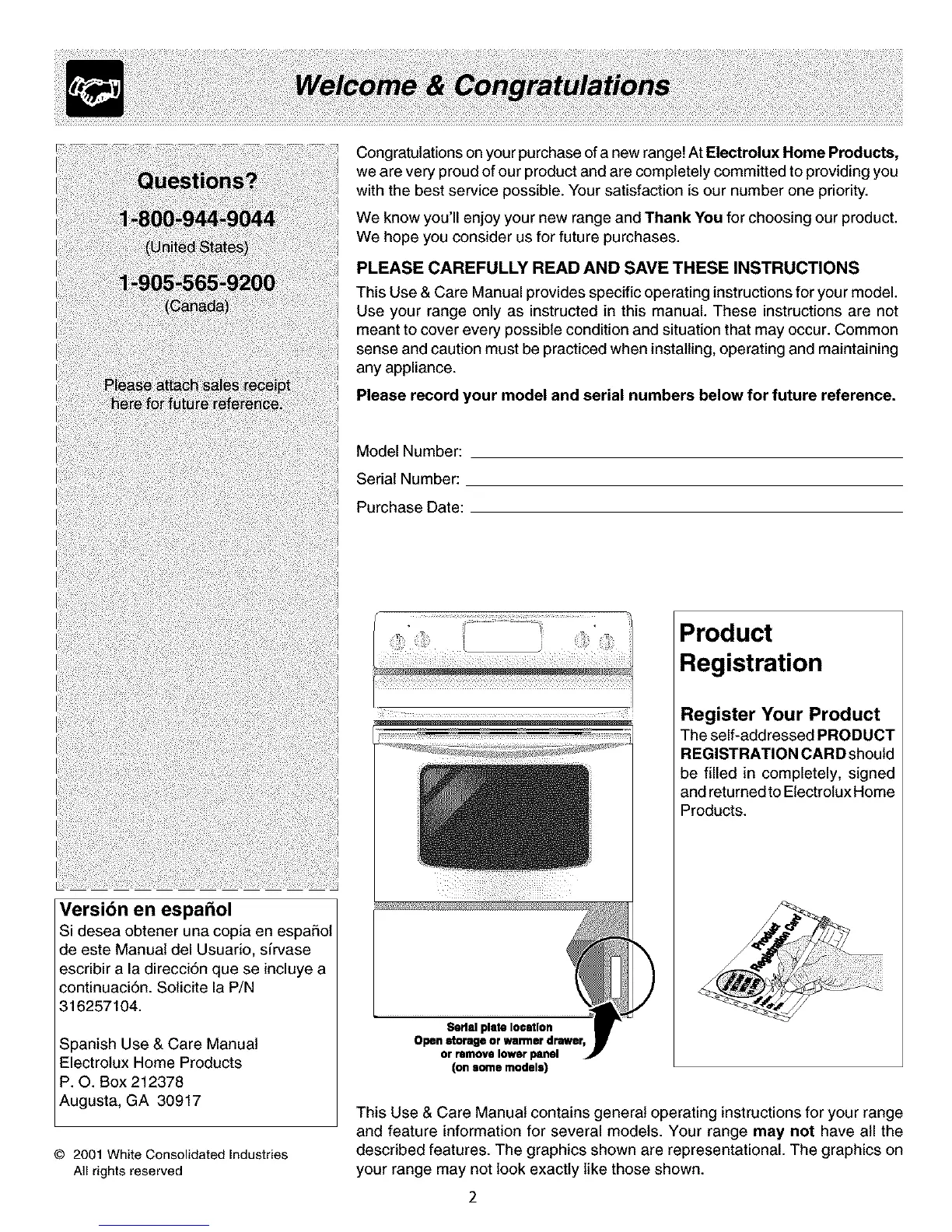 Congratulations on your purchase of a new range! At Electrolux Home Products,