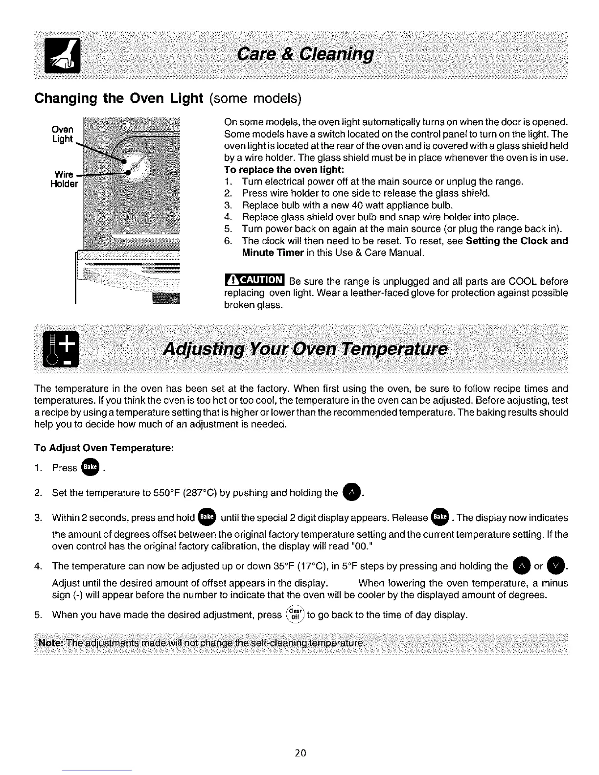 temperatures. Ifyou think the oven is too hot or too cool, the temperature in the oven can be adjusted. Before adjusting, test