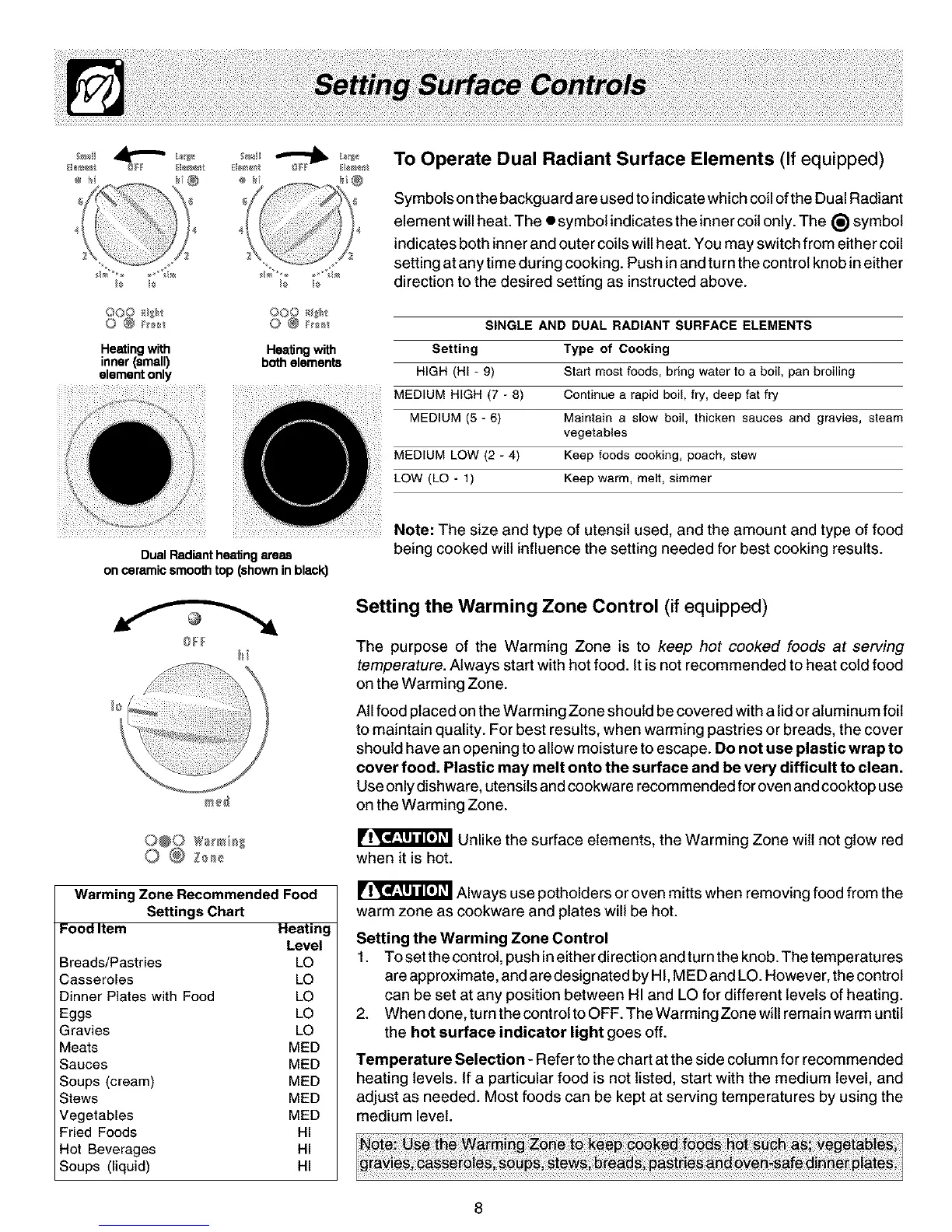 DualRadiantheatingareas being cooked will influence the setting needed for best cooking results.