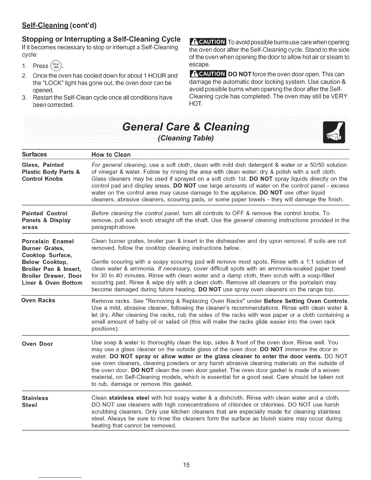 If it becomes necessary to stop or interrupt a Self-Cleaning