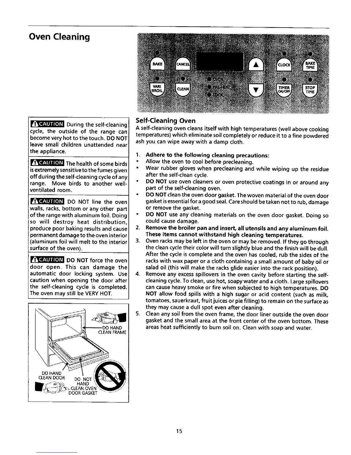 DO NOT clean the oven door gasket. The woven material of the oven door