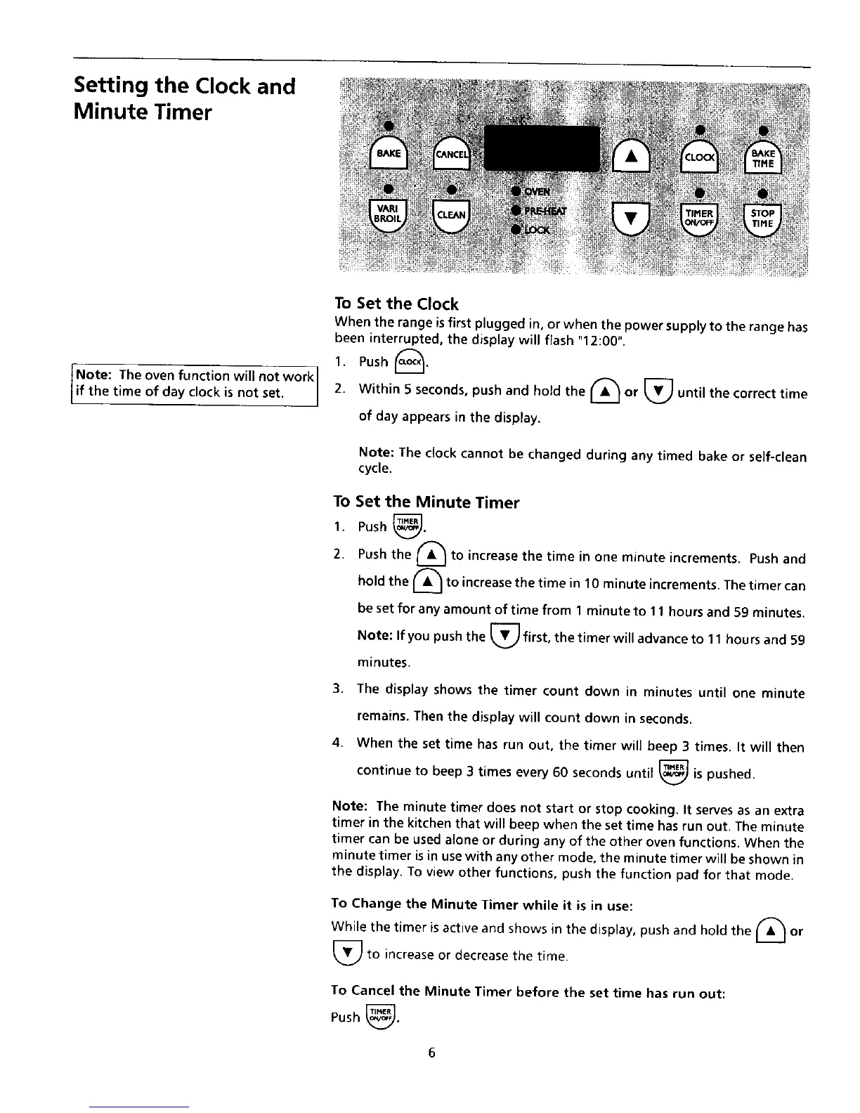 Note: The minute timer does not start or stop cooking. It serves as an extra