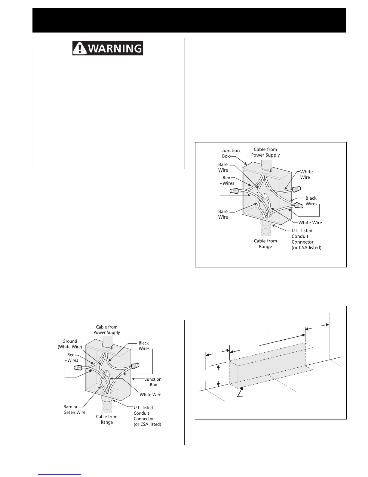 For appliances connected to a junction box, use U.L.-