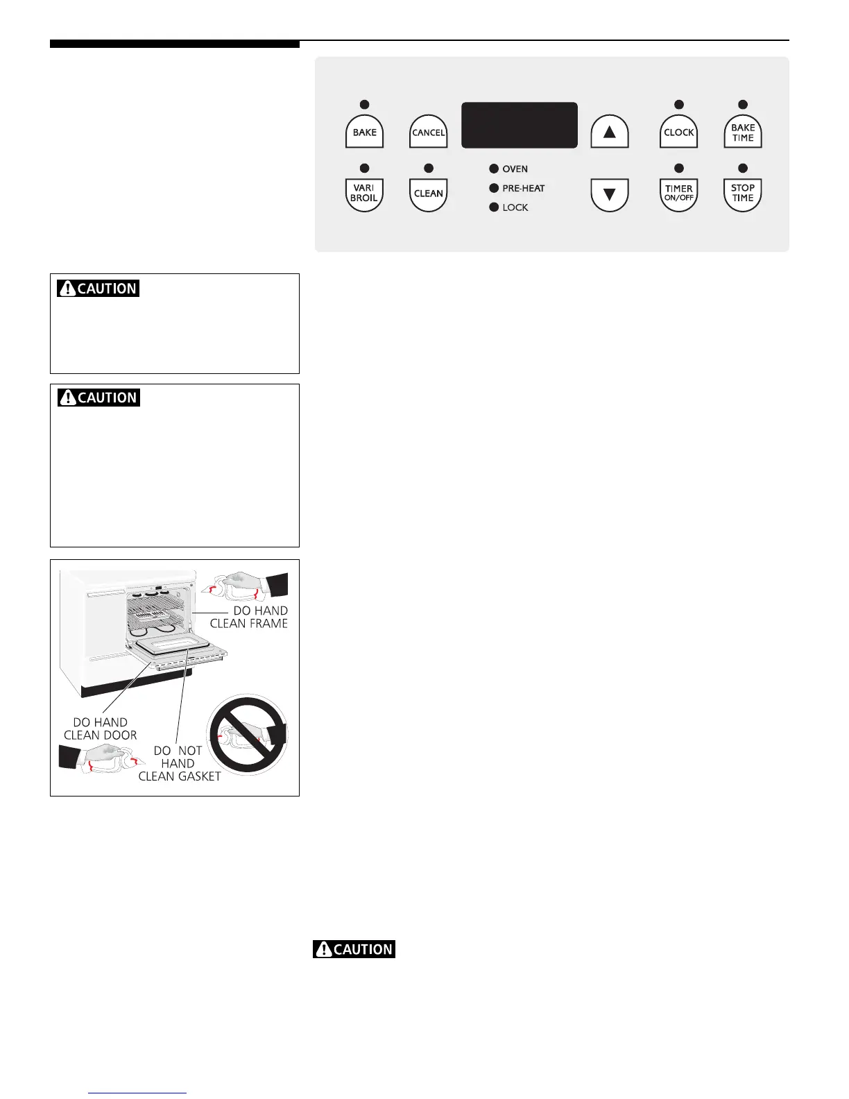 • DO NOT clean the oven door gasket. The woven material of the oven door