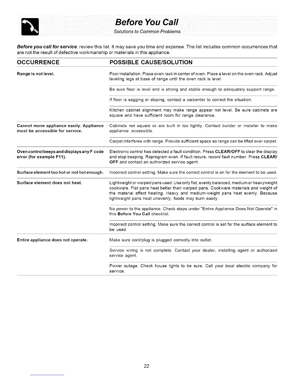 Before you call for service, review this list. It may save you time and expense. The list includes common occurrences that