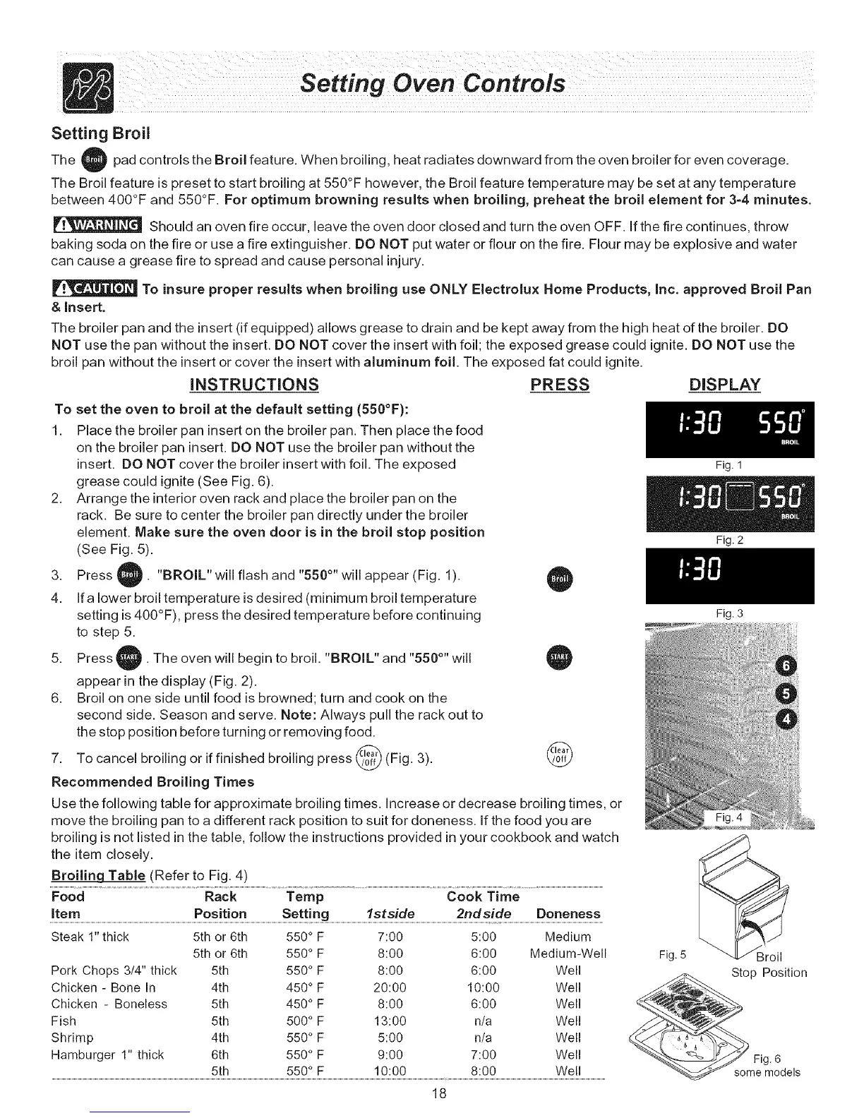 To insure proper results when broiling use ONLY Electrolux Home Products, inc. approved Broil Pan