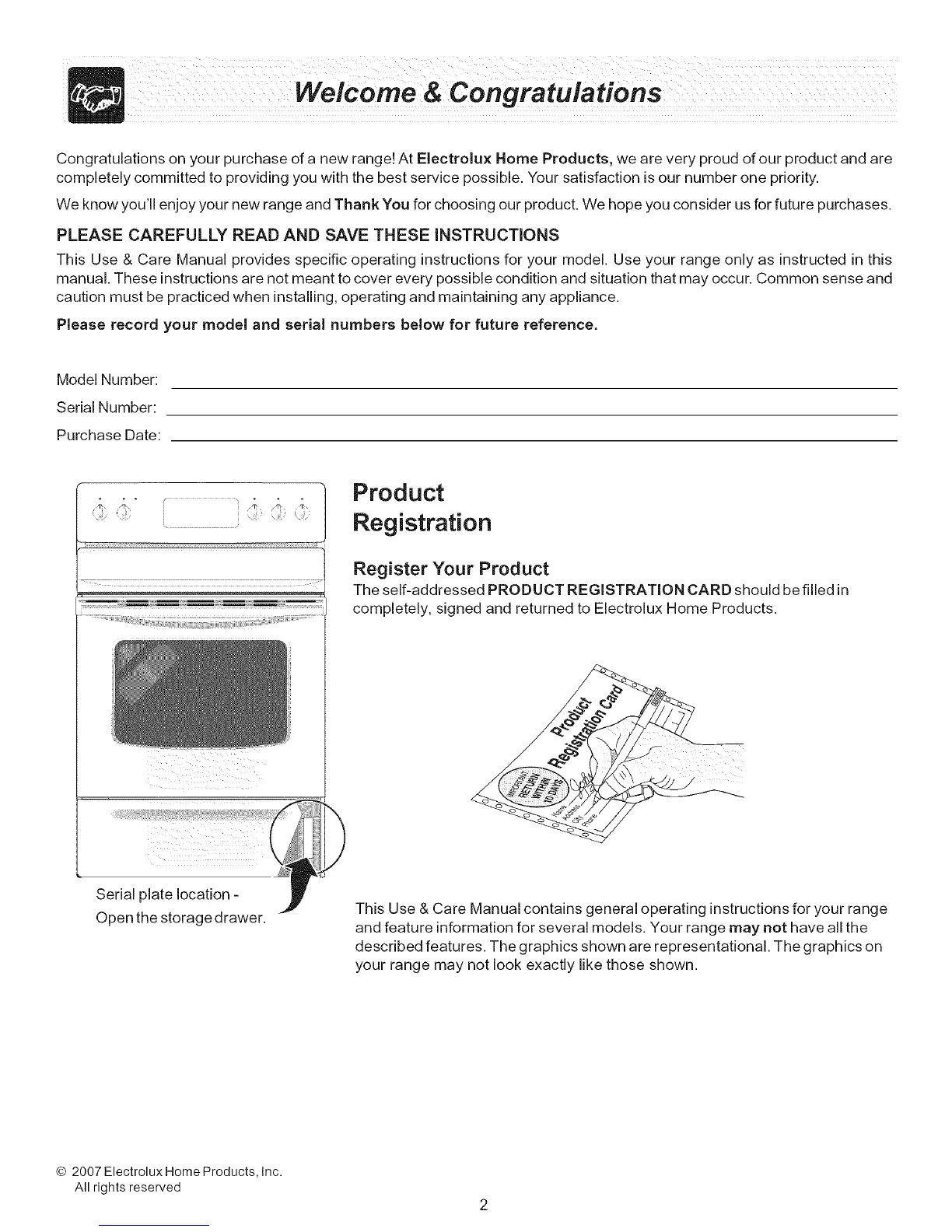 Congratulations on your purchase of a new range! At Electrolux Home Products, we are very proud of our product and are