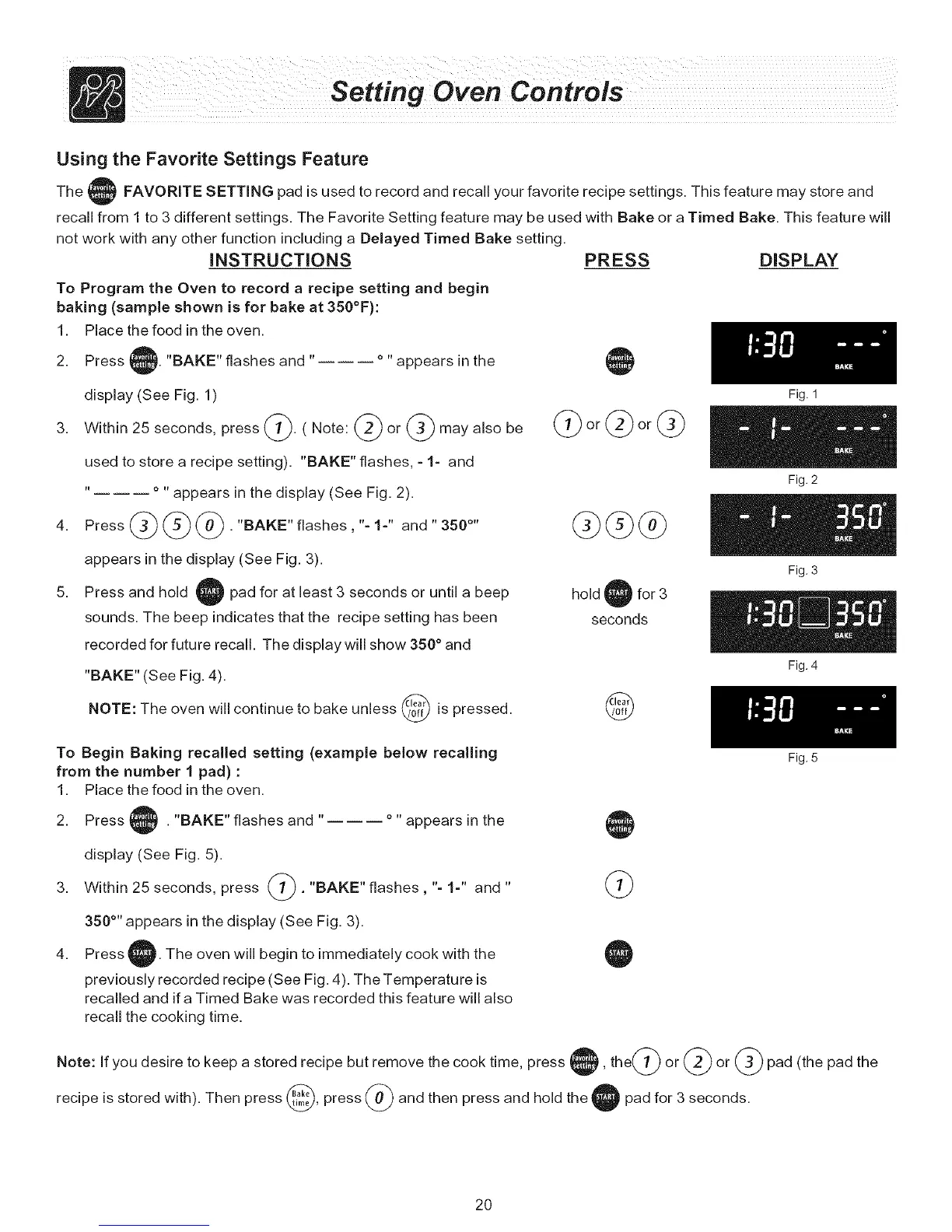 recall from 1 to 3 different settings. The Favorite Setting feature may be used with Bake or a Timed Bake. This feature will