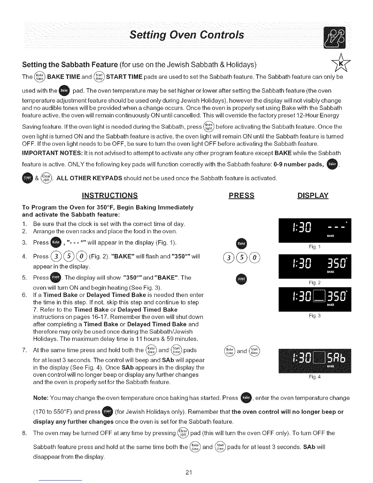 IMPORTANT NOTES: It is not advised to attempt to activate any other program feature except BAKE while the Sabbath