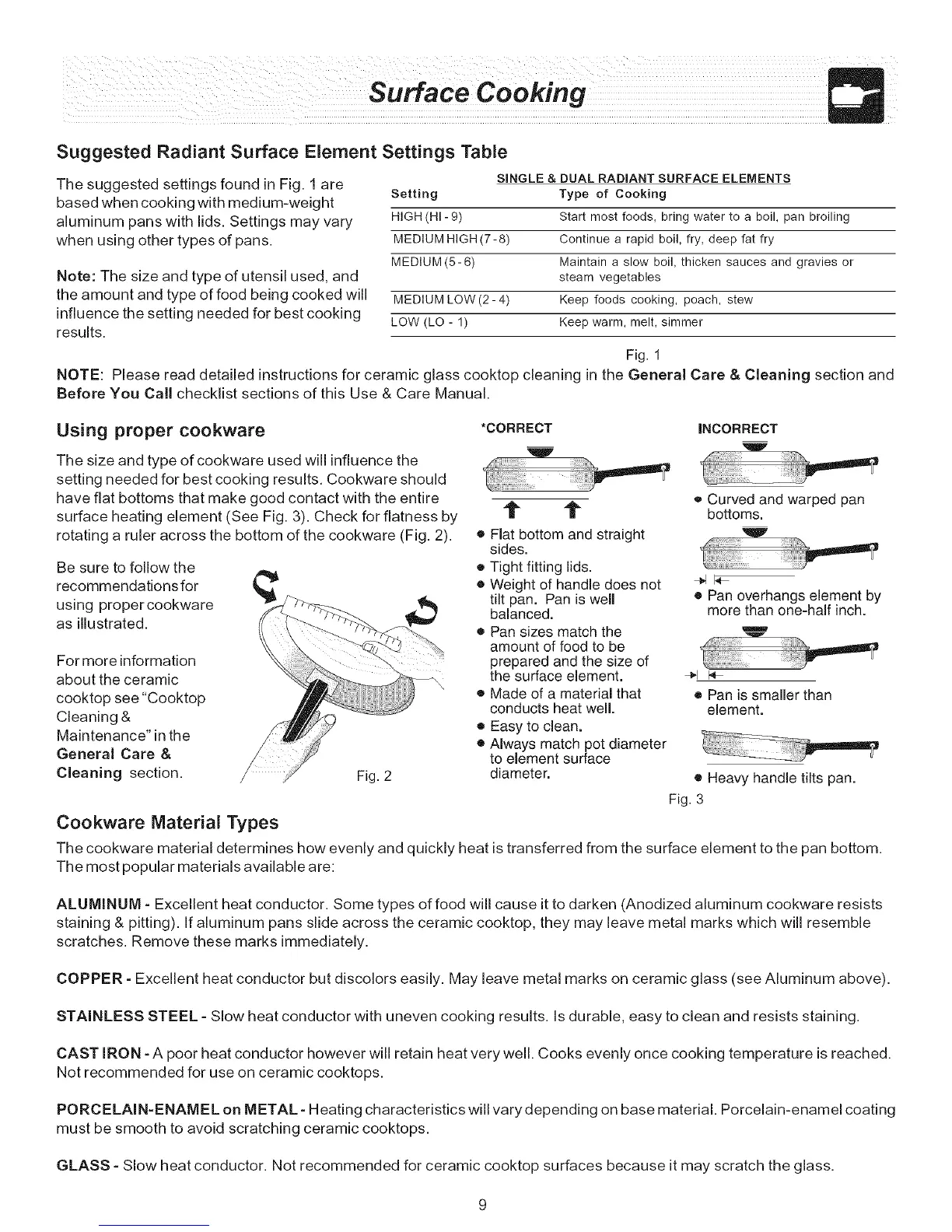 setting needed for best cooking results. Cookware should
