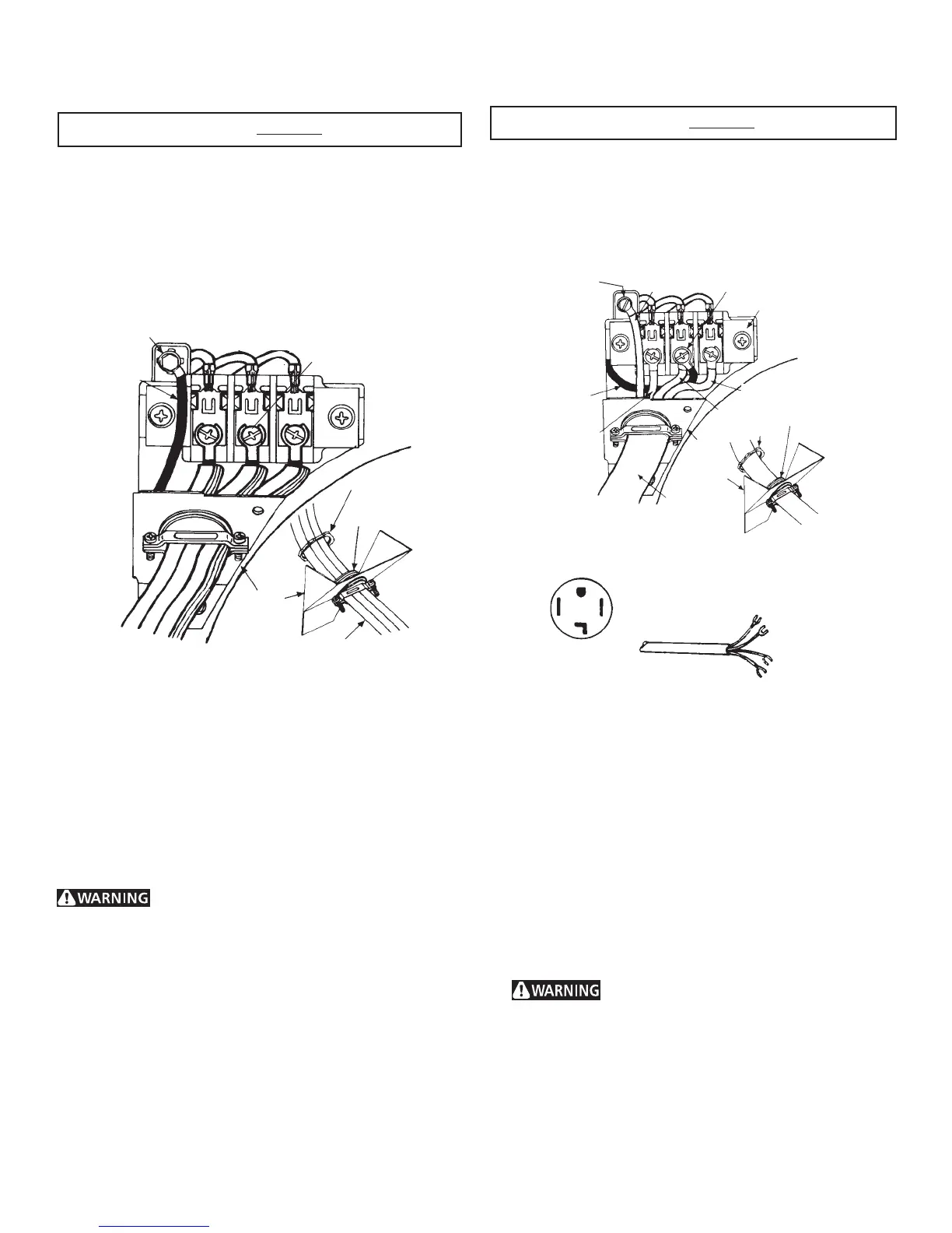 3. Thread a U.L. approved 30 amp. power cord, NEMA 10-30
