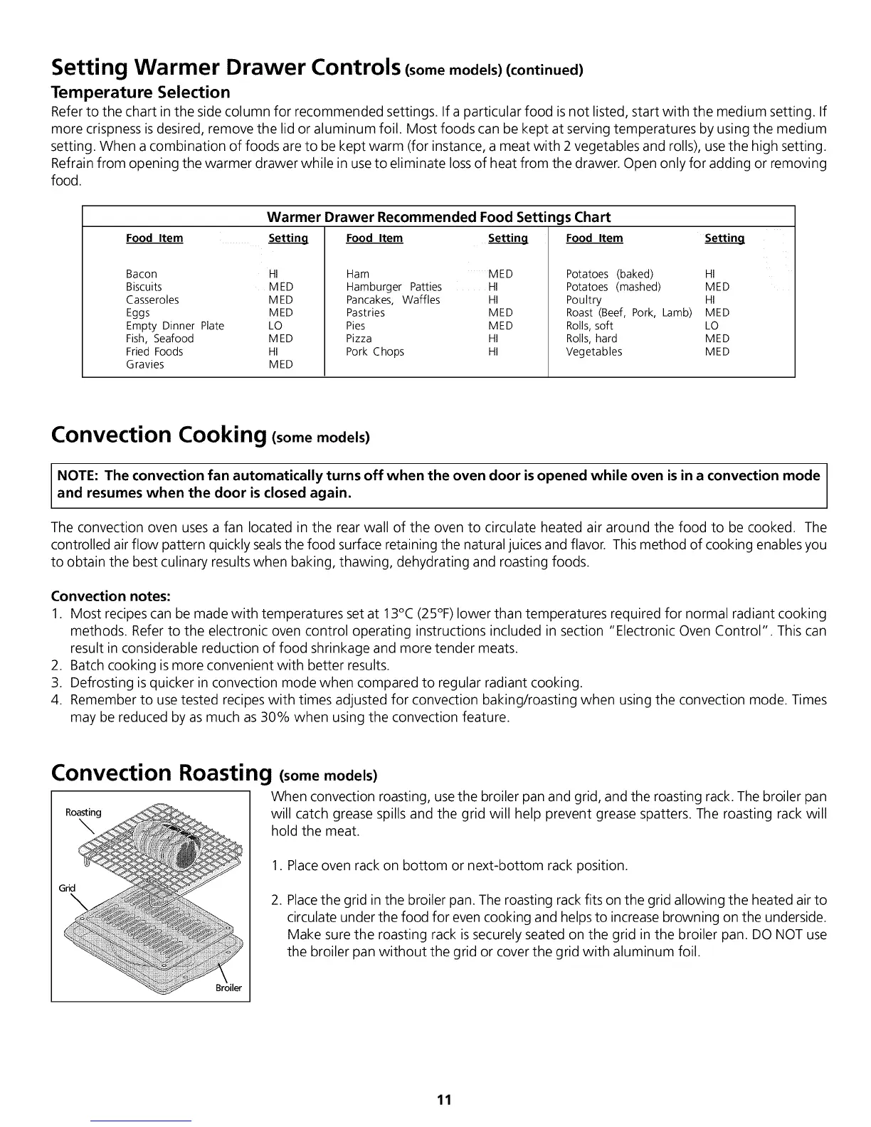 4. Remember to use tested recipes with times adjusted for convection baking/roasting when using the convection mode. Times