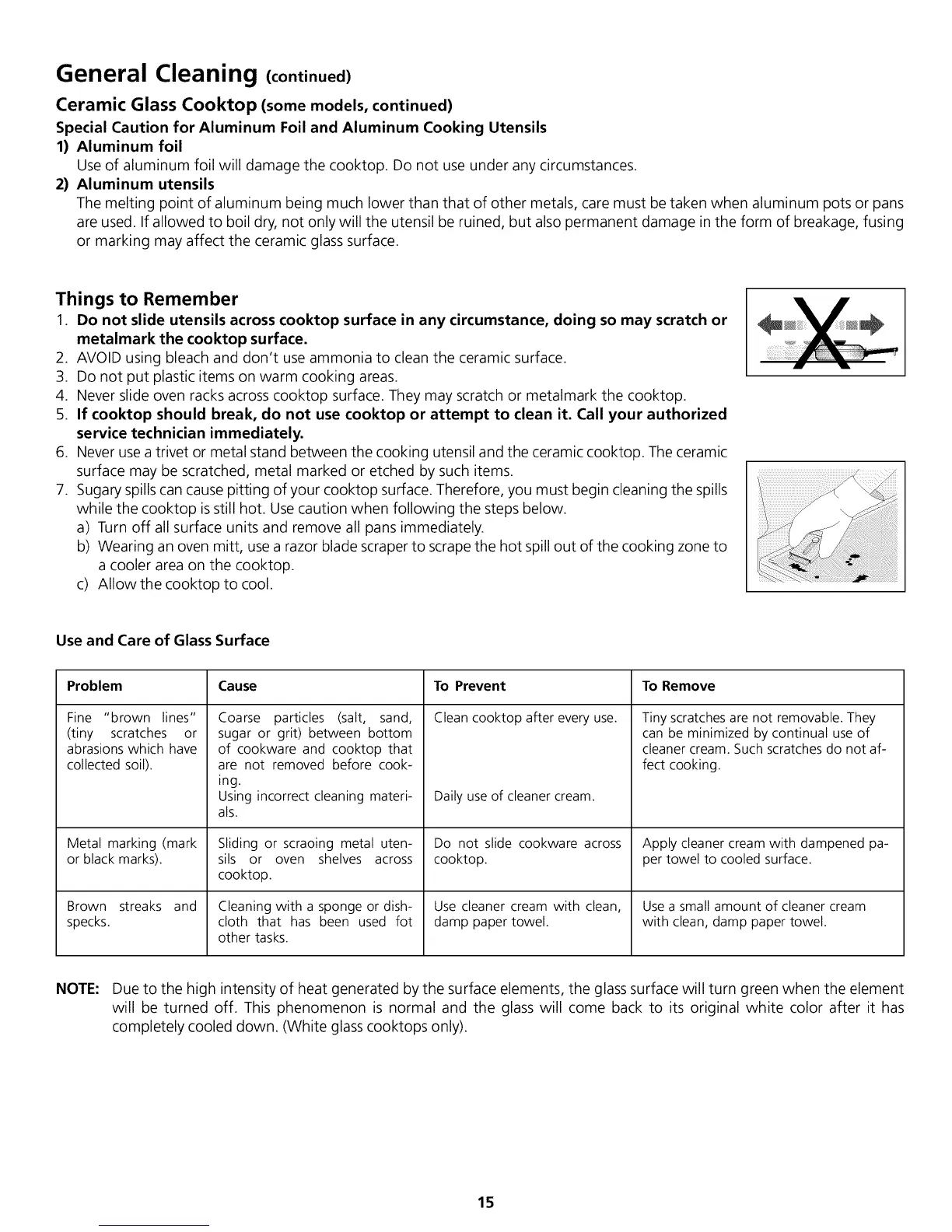1. Do not slide utensils across cooktop surface in any circumstance, doing so may scratch or
