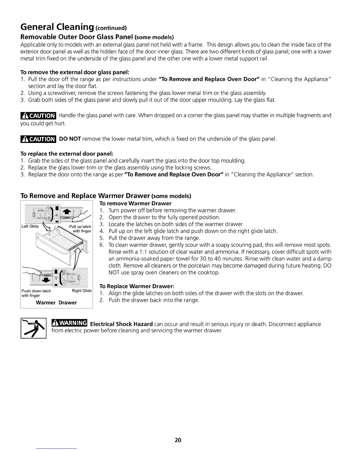 ["_1 _ Electrical Shock Hazard can occur and result in serious injury or death. Disconnect appliance