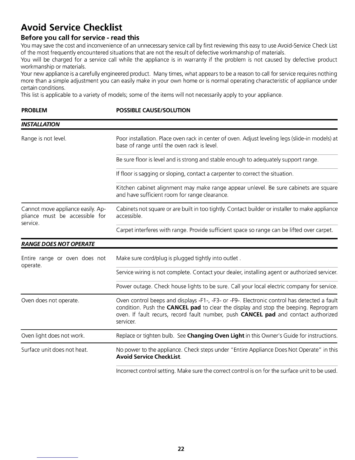 You may savethe cost and inconvenience of an unnecessary service call by first reviewing this easyto use Avoid-Service Check List