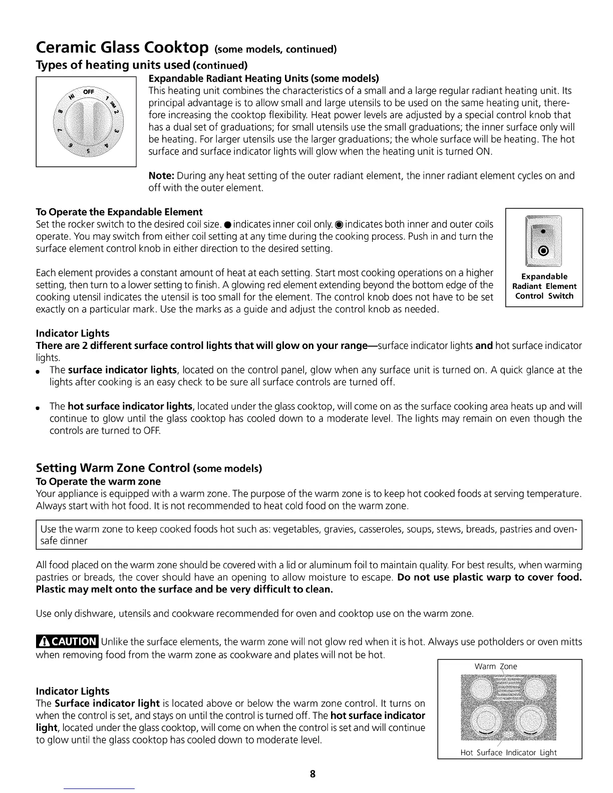 Your appliance is equipped with a warm zone. The purpose of the warm zone isto keep hot cooked foods at serving temperature.