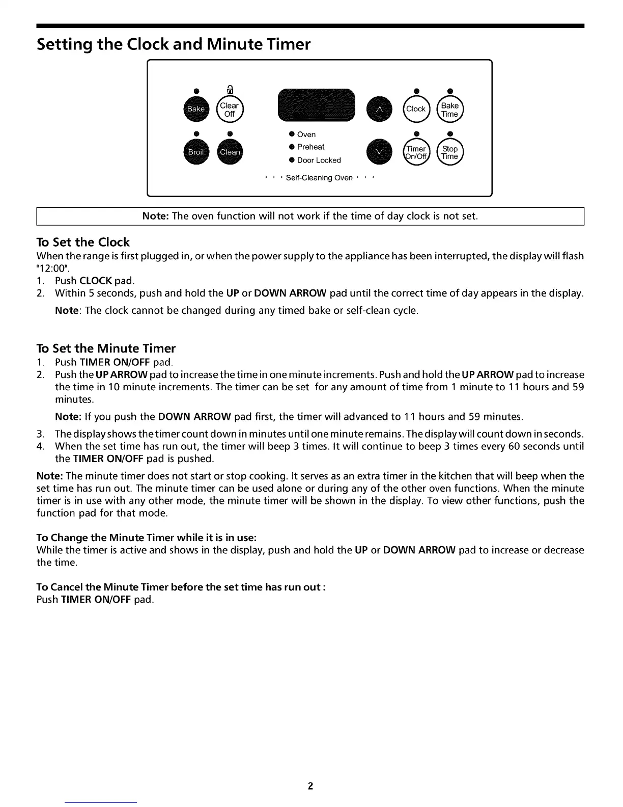 Note: The minute timer does not start or stop cooking. It serves as an extra timer in the kitchen that will beep when the