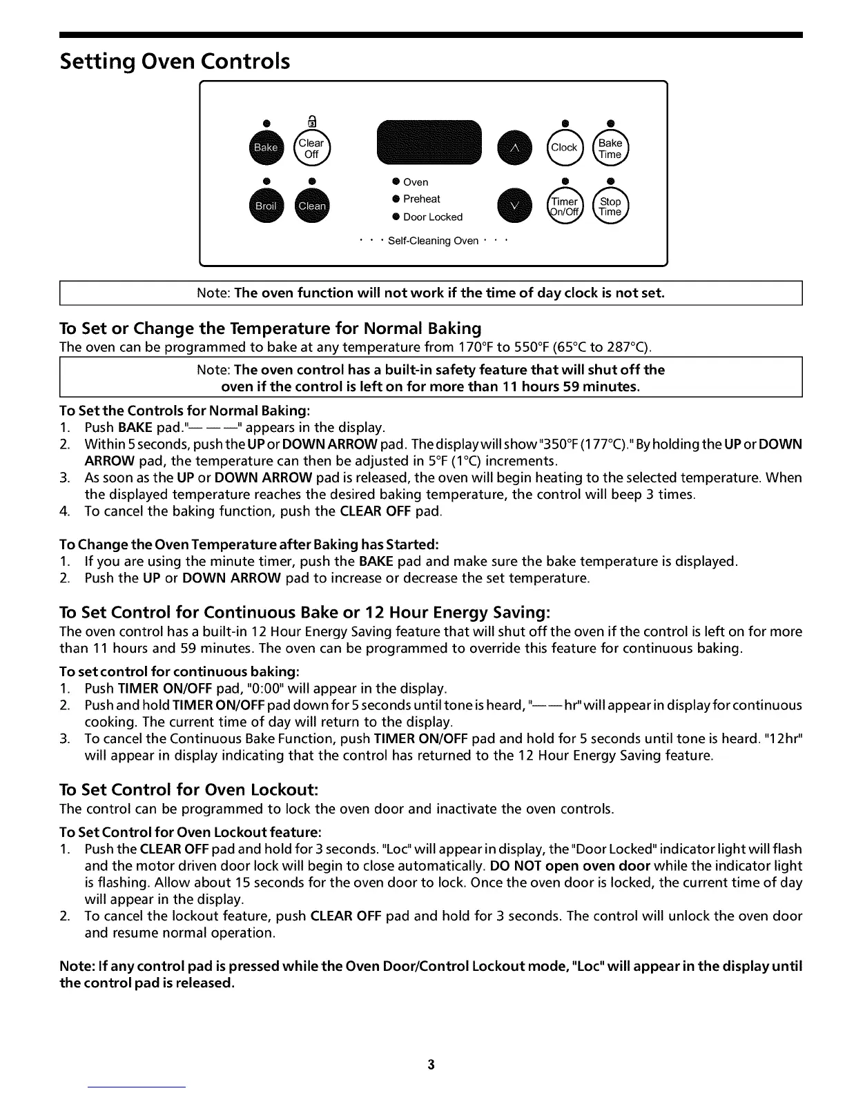 Note: If any control pad is pressed while the Oven Door/Control Lockout mode, "Loc" will appear in the display until