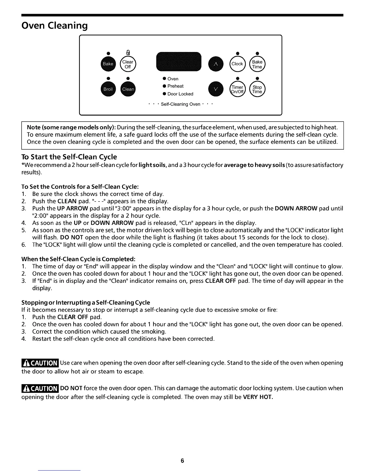 To ensure maximum element life, a safe guard locks off the use of the surface elements during the self-clean cycle.