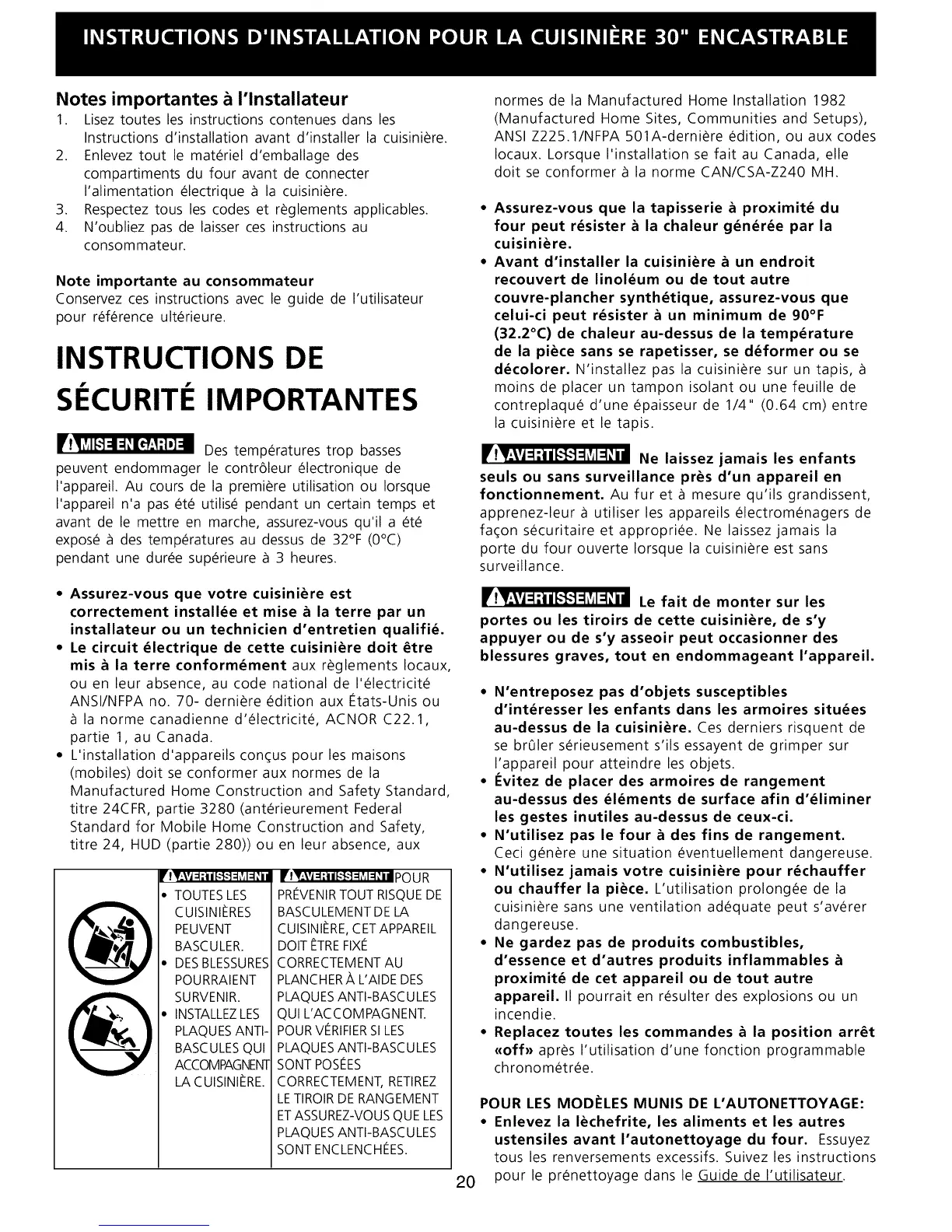 Instructions d'installation avant d'installer la cuisini_re.