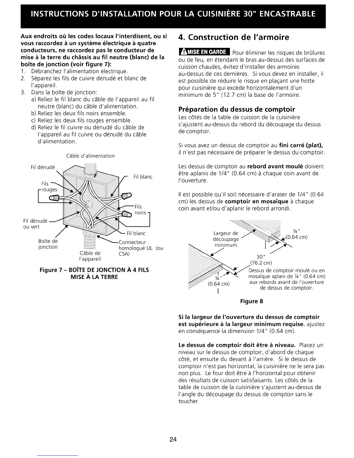 Si la largeur de I'ouverture du dessus de comptoir
