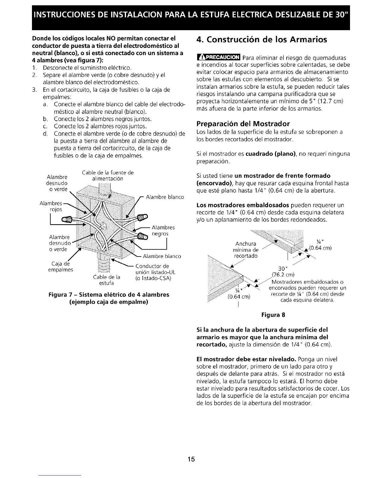 Si el mostrador es cuadrado (piano), no requeri ninguna