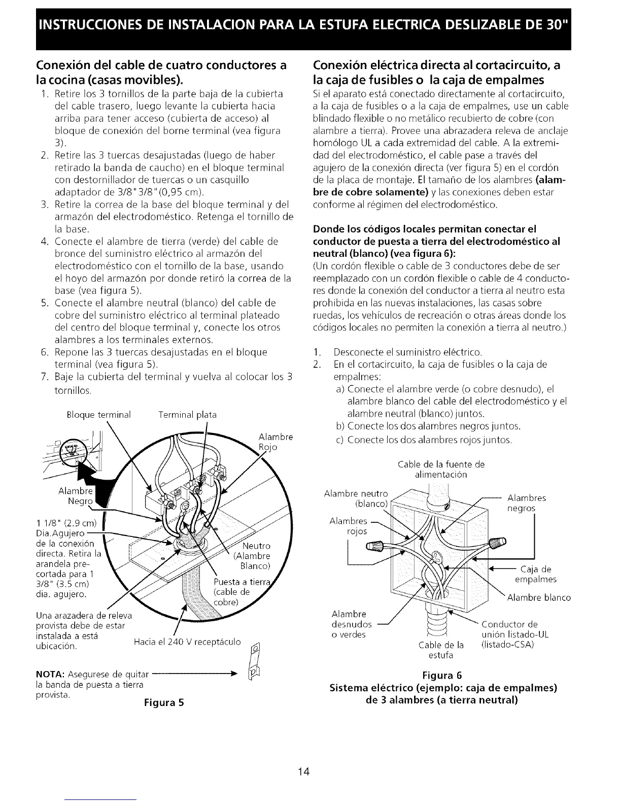bre de cobre solamente) y las conexiones deben estar