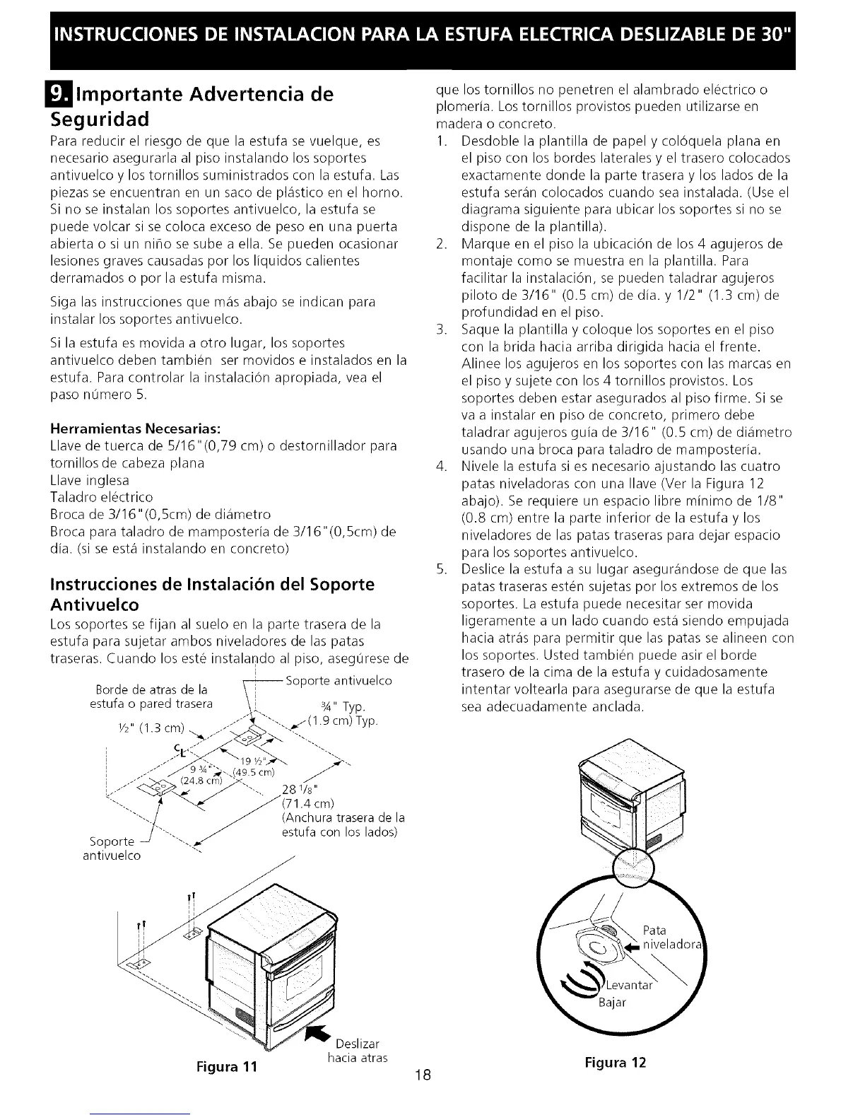 abajo). Se requiere un espacio libre minimo de 1/8"