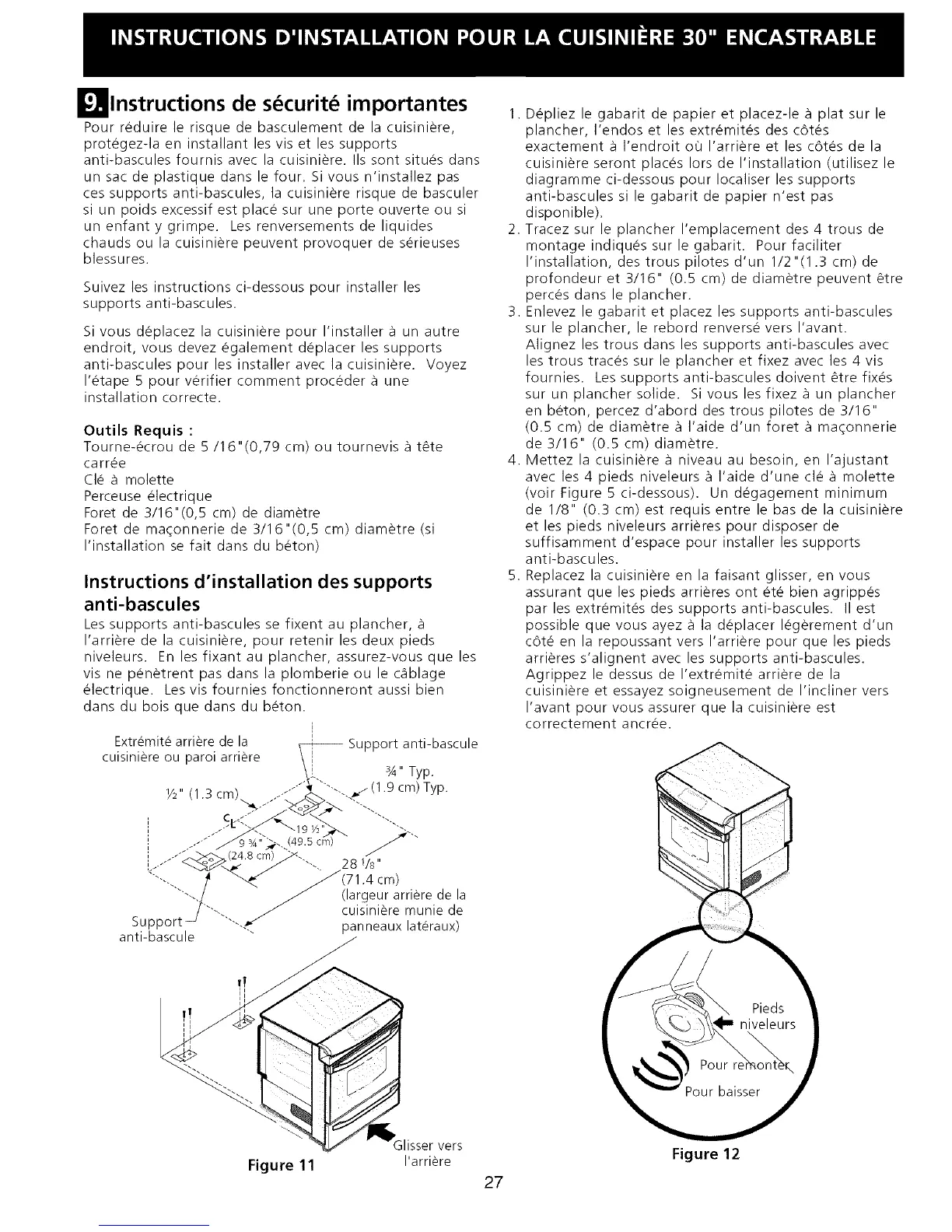 anti-bascules fournis avec la cuisiniere. IIs sont situ_s dans