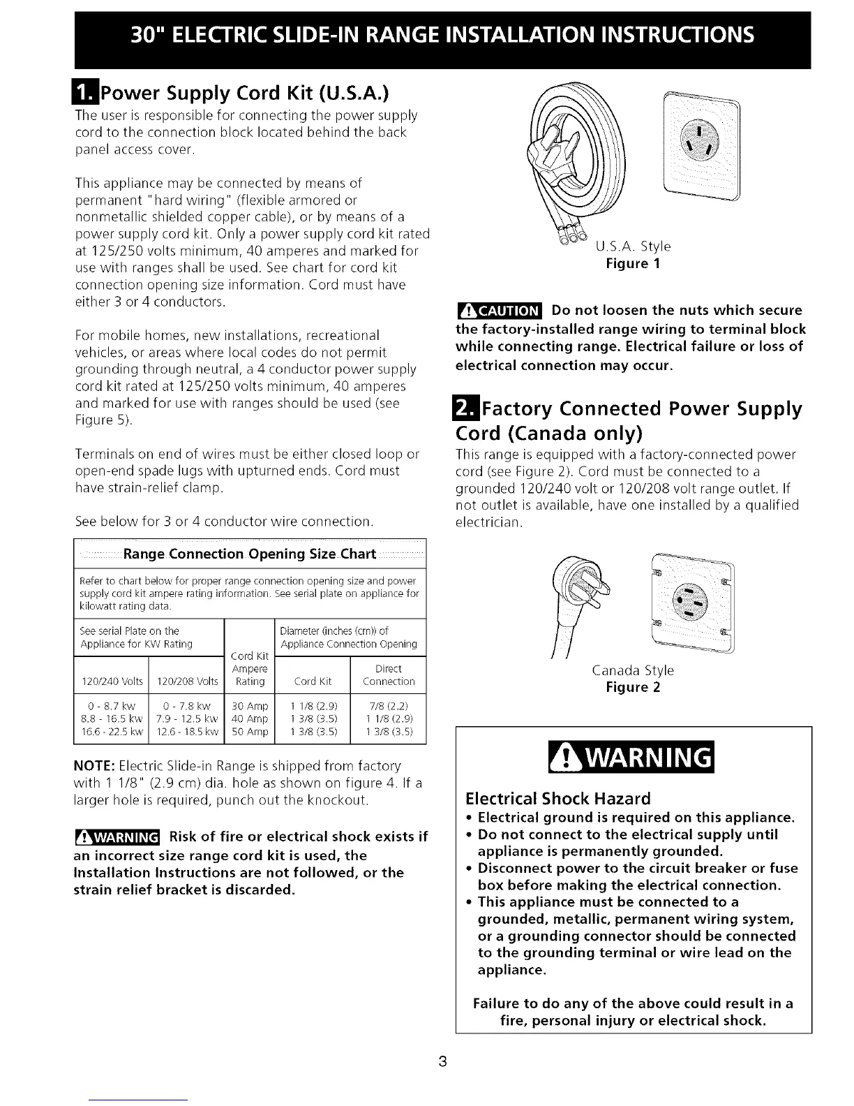 supply cord kit ampere rating information. Seeserial plate on appliance for