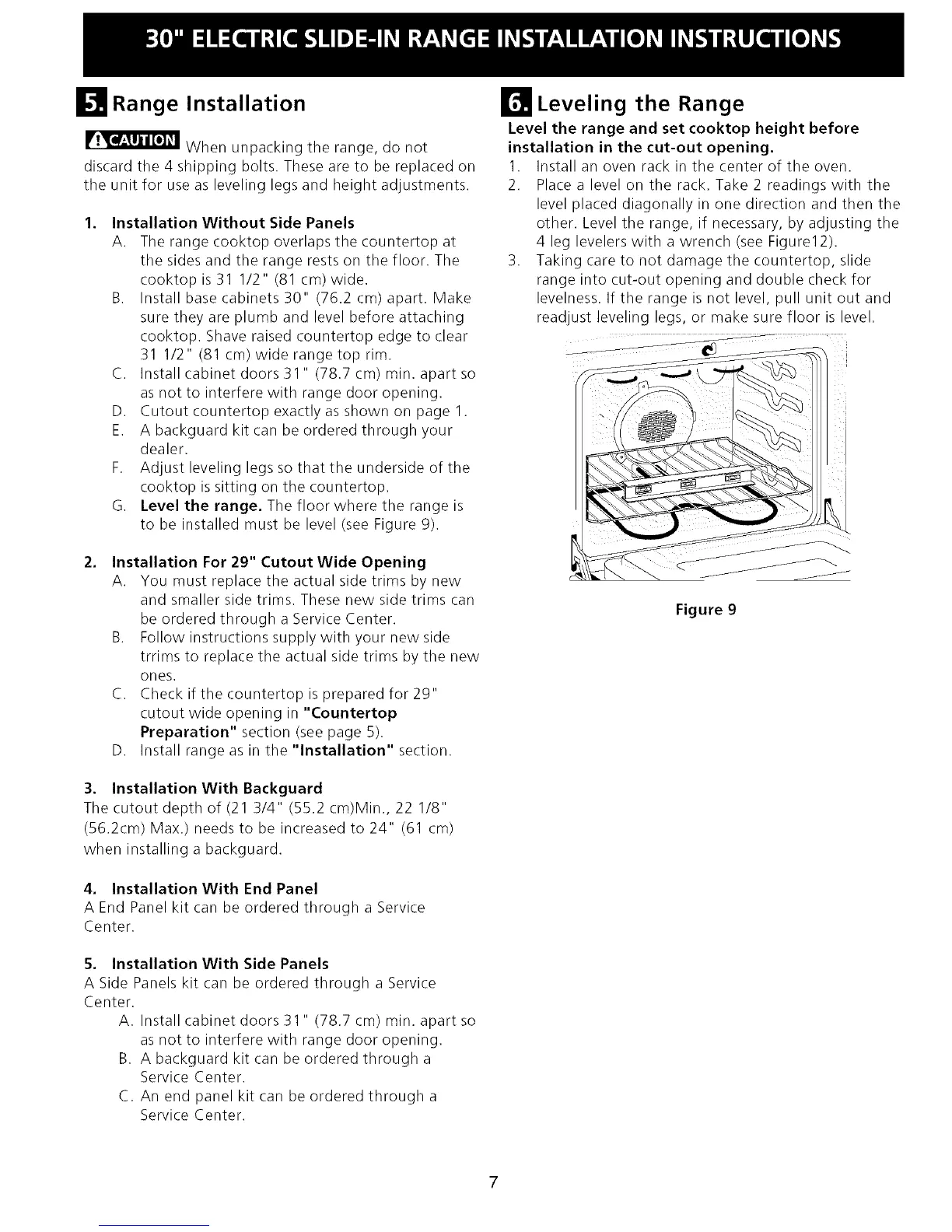 B. Install base cabinets 30" (76.2 cm) apart. Make