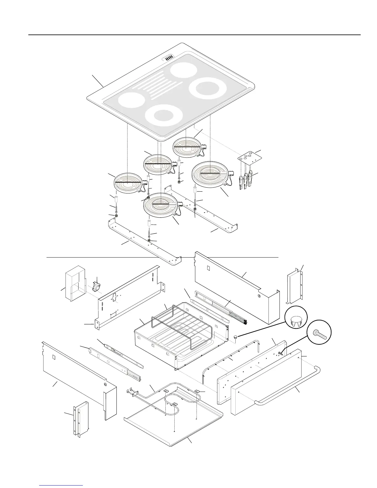 Frigidaire FES388WG - Top and Drawer Assembly; Top and Drawer Components Diagram