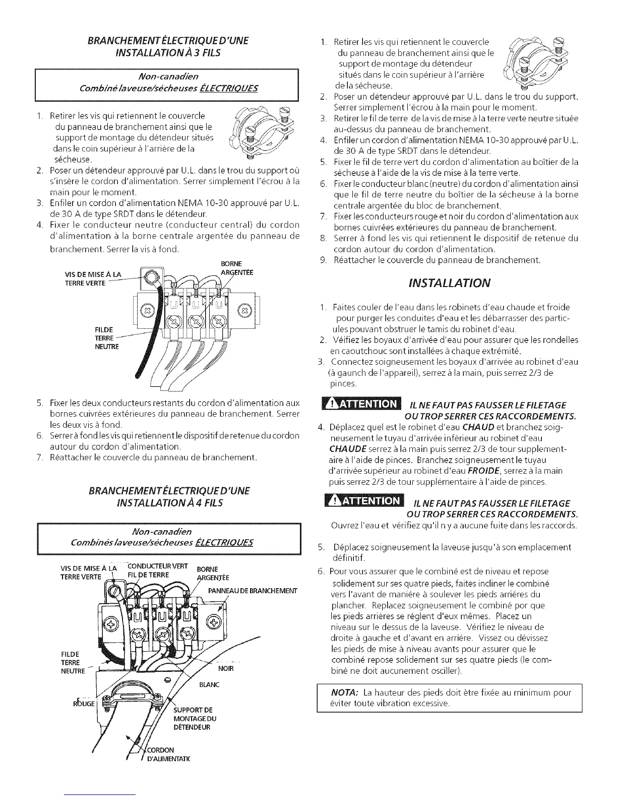 4. Enfiler un cordon d'alimentation NEMA 10-30 approuve par U.L.