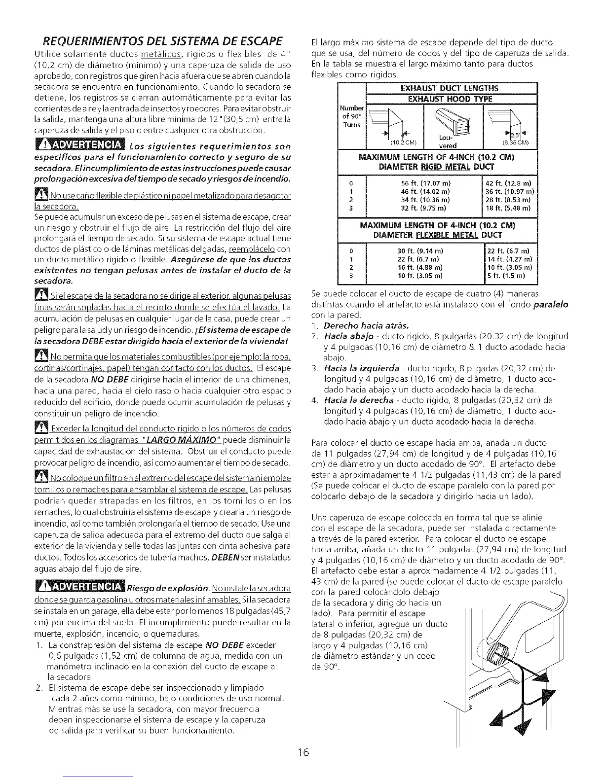 un ducto met_flico rigido o flexible. Asegurese de que los ductos