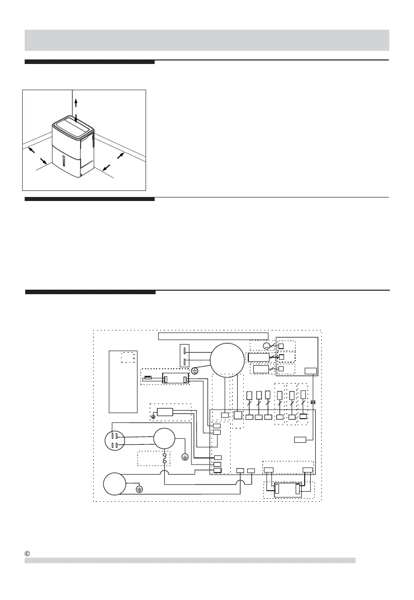 2. Place dehumidifier in a location that does not restrict t he airflow of the air intake and air