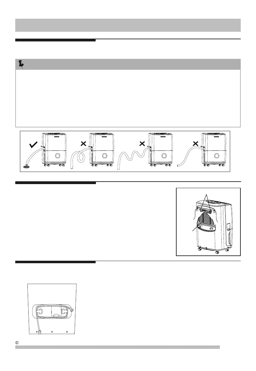 4. When applying continuous drainage option, place dehumidifier on a horizontal surface and make sure garden hose is clear