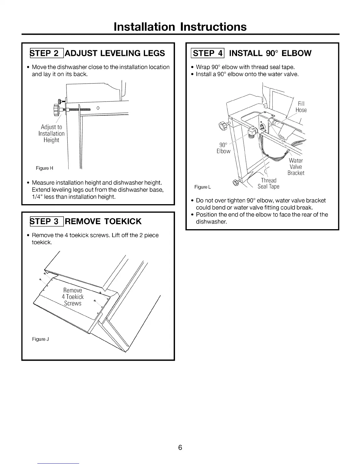 • Do not over tighten 90° elbow, water valve bracket