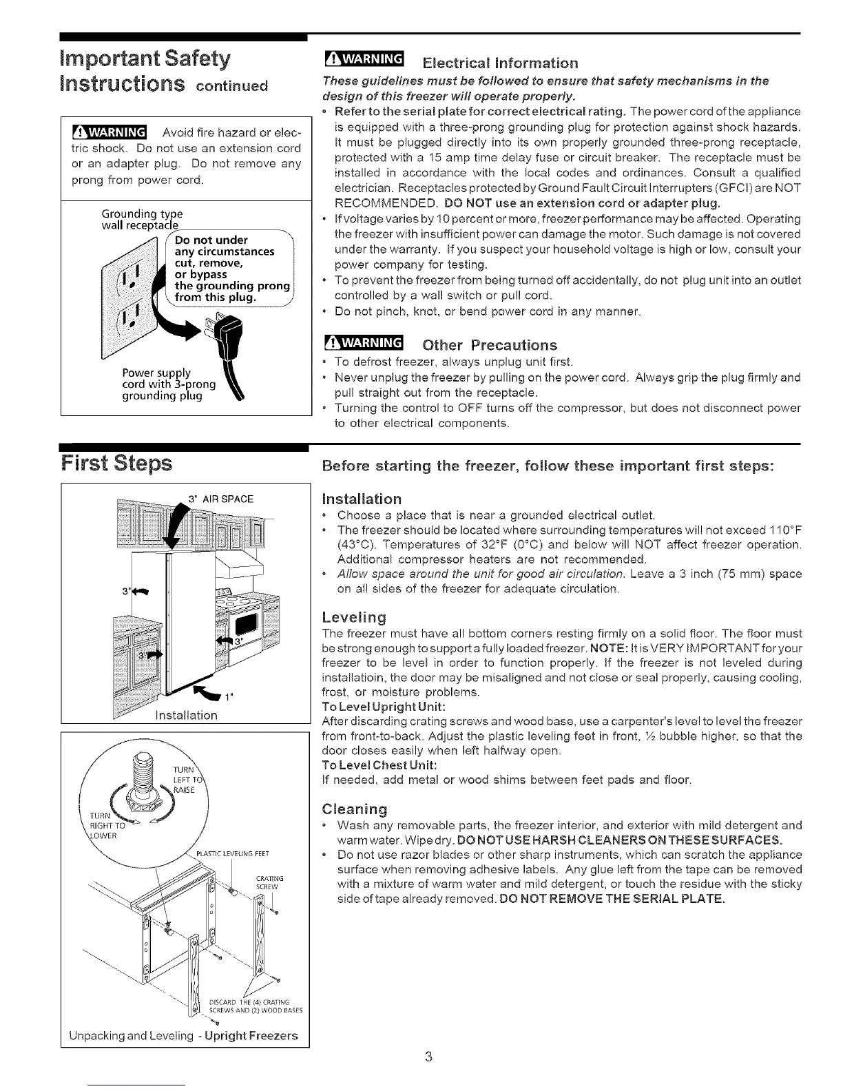 • The freezer should be located where surrounding temperatures wi!! not exceed 110°F