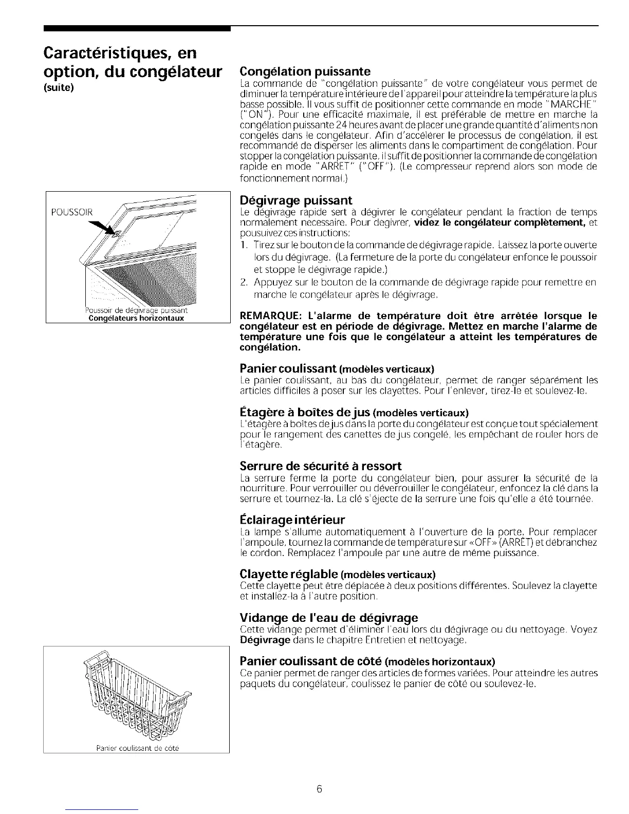 nourriture. Pour verrouiller ou deverrouiller le congetateur, enfoncez la cle dans ta