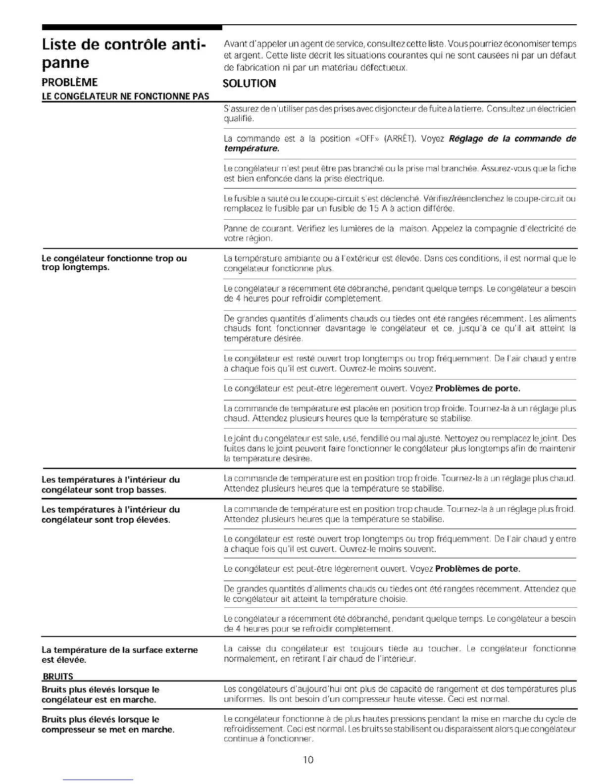 Le congelateur est peubetre legerement ouvert Voyez Problemes de porte.