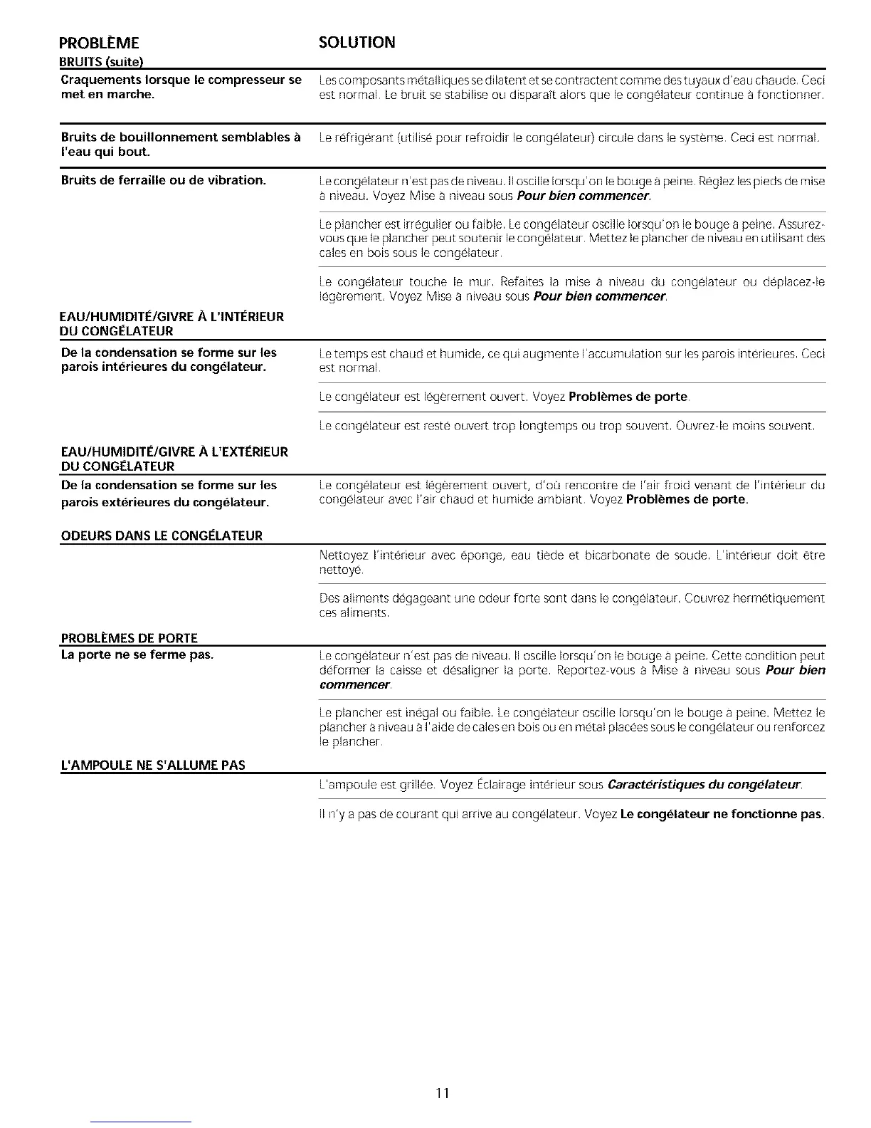 Bruits de bouillonnement semblables b Le refrigerant (utilise pour refroidir le congelateur) circule dans le systeme Ceci est normal,